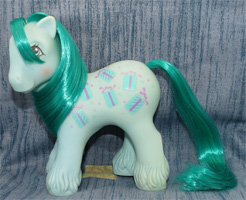 Geschichte:„Als Brüderchen und Schwesterchen vor kurzem Geburtstag hatten, fand natürlich auch eine richtige Party statt, zu der alle Baby-Ponys eingeladen waren. Kurz bevor die Geburtstagskinder die Kerzen auf ihrem Kuchen ausblasen wollten, blinzelte ich mit meinen Augen und die Kerzen verwandelten sich in Wunderkerzen. Viele kleine explodierende Sternchen flogen durch die Luft. Das war eine Freude!“