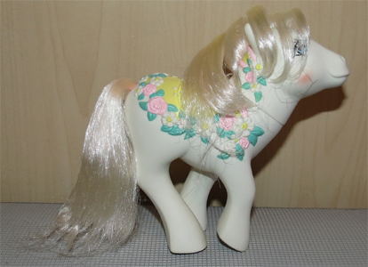 Geschichte:„Am Schluss des Erntedankfests lud ich alle Ponys zu meiner Lichterschau ein. Meine Freunde warteten schon aufgeregt im Dunkeln, als ich endlich auf einen Schalter drückte, um die Lichter einzuschalten - doch nichts geschah! Schnell flog ich zum Himmel empor und berührte die Lichter mit einem Mondstrahl. Daraufhin erglühten sie am Nachthimmel und sahen wie leuchtende Blumen aus. Ich pflückte einige Lichterblumen und machte mir daraus einen hübschen Umhang und ein schönes Stirnband. Ich bekam viel Applaus für meine märchenhafte Lichterschau.“