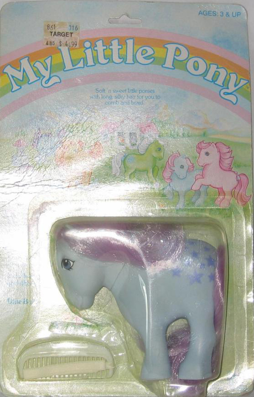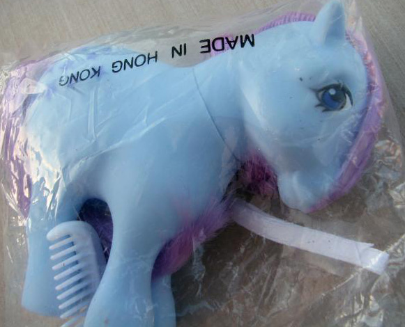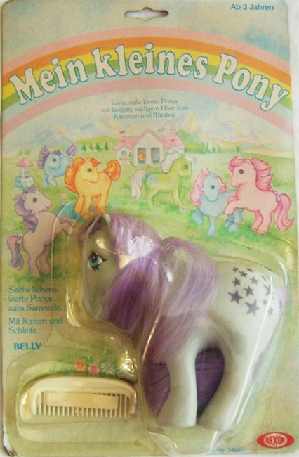 Geschichte auf der Packung USA:„My Little Pony is a pretty pony with long, shiny hair. She likes you to comb her hair so it stays silky and soft. You can braid her tail and tie it in a ribbon too! “