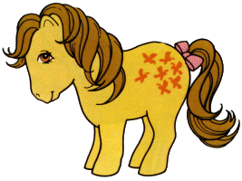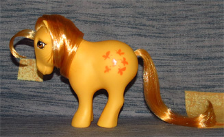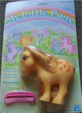 Geschichte auf der Packung USA:„My Little Pony is a pretty pony with long, shiny hair. She likes you to comb her hair so it stays silky and soft. You can braid her tail and tie it in a ribbon too!“