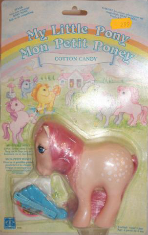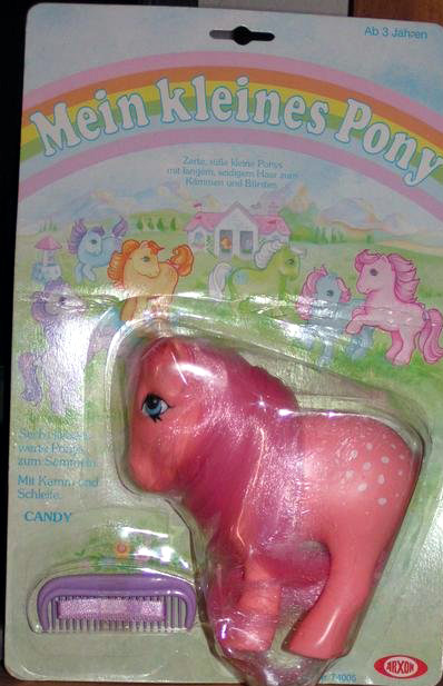 Geschichte auf der Packung USA:„My Little Pony is a pretty pony with long, shiny hair. She likes you to comb her hair so it stays silky and soft. You can braid her tail and tie it in a ribbon too!“
