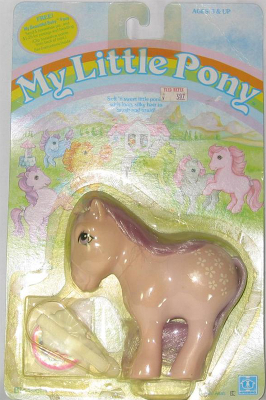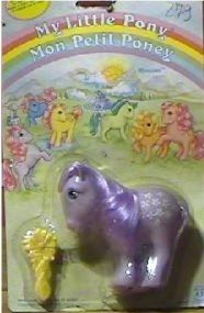 Geschichte auf der Packung USA:„My Little Pony is a pretty pony with long, shiny hair. She likes you to comb her hair so it stays silky and soft. You can braid her tail and tie it in a ribbon too!“