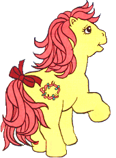 Kisscurl / Rotschöpfchen mit Katze Catnip / Schneeflocke haben einen Schönheitssalon mitgebracht. Sie ist gelb mit rosa Haaren und hat rosa Zöpfchen als Symbol.