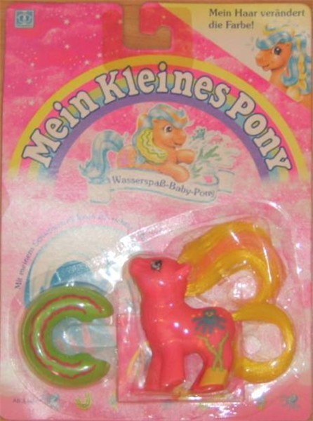 Baby Splosh / Baby Blub ist pink und hat gelb-Strähne-gelbe Haare. Ihr Symbol ist ein Tintenfisch.
