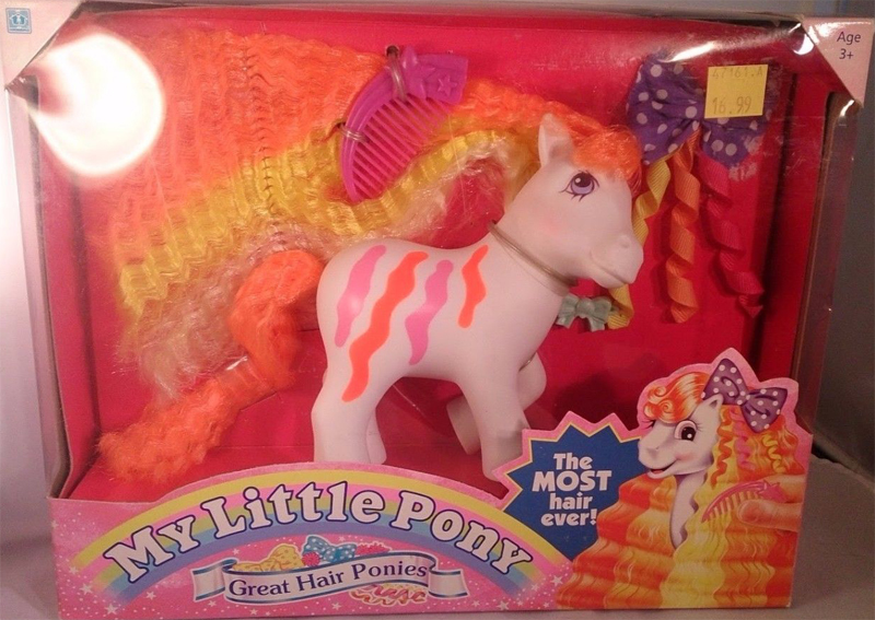Highlights ist weiß und hat orange-gelb-weiße Haare. Sie hat auf ihrem Körper orange und lila Streifen.