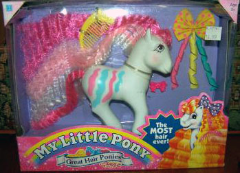 Ringlets ist weiß und hat pink-rosa-weiße Haare. Auf ihrem Körper sind pinke und blaue Streifen.