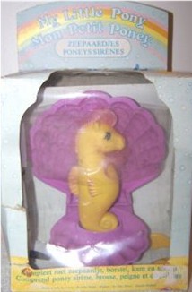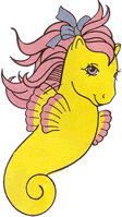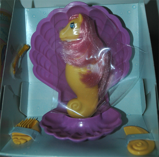 ist gelb mit rosa Haaren. Ihre Muschel ist rosa/lila.