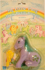 Geschichte auf der Packung USA:„Seashell was at the beach chasing the waves and rolling in the deep sand dunes. She bent down to lick the salt off her hoofs and, before she knew it, one of her Sea Pony friends had clamped on to her beautiful mane. "Why are you hanging on my mane, Sea Pony?" Seashell asked. "I want to go for a ride," replied her friend, "a real pony ride." "If you asked politely, I'd be happy to give you a ride," Seashell said. But the Sea Pony said nothing and clamped down even harder. Shaking her head in dismay, Seashell gave her a ride she'd never forget! “