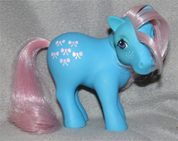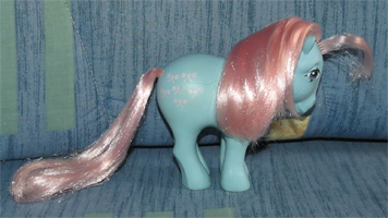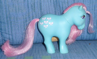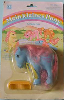 Geschichte auf der Packung USA:„Bow-Tie was feeling sad. "I don't think anyone has remembered my birthday," she whinnied. Suddenly, Firefly swooped down from the sky with hundreds of colorful ribbons trailing behind. Medley floated down on a cloud, and the song Happy Birthday was heard all around. Ribbons were everywhere, hanging from the clouds and floating on the wind. Everyone brought presents. Bow-Tie eagerly opened them and found ribbons of velvet, satin and silk - in every color of the rainbow! "Thank you, thank you all," she said. "I'll always wear your beautiful ribbons!" “