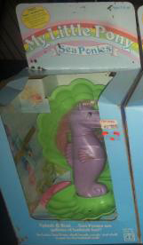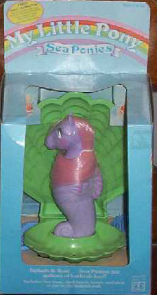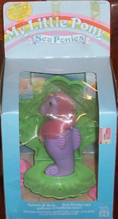 ist lila mit rosa Haaren. Ihre Muschel ist grün.