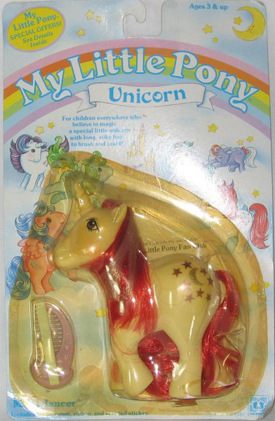 Moondancer / Traumtänzer ist weiß mit roten Haaren und einer lila Strähne. Sie hat ein Horn und als Zeichen einen glitzernden Mond mit Sternen. In Europa ist sie in auch in der gelben Version erschienen.