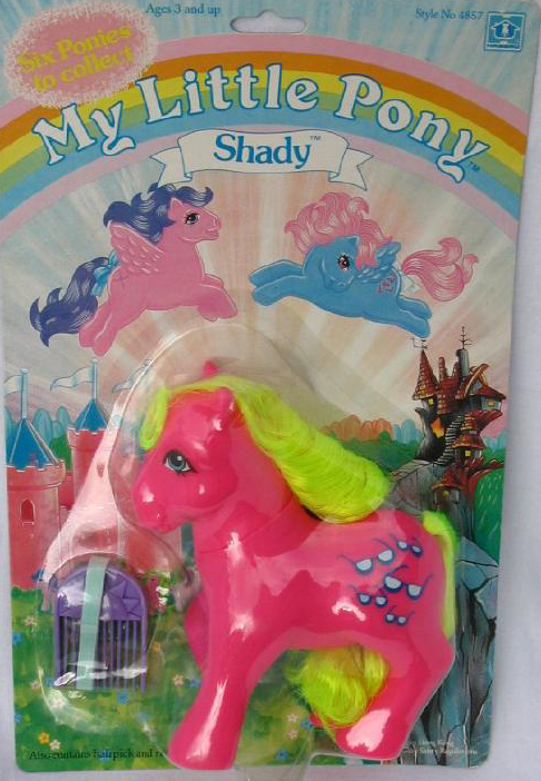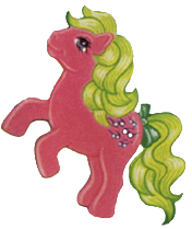 ist pink mit gelben Haaren. Sie hat Sonnenbrillen als Zeichen.