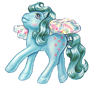 ist türkis und hat türkise Haare. Ihre Symbole sind Blüten.