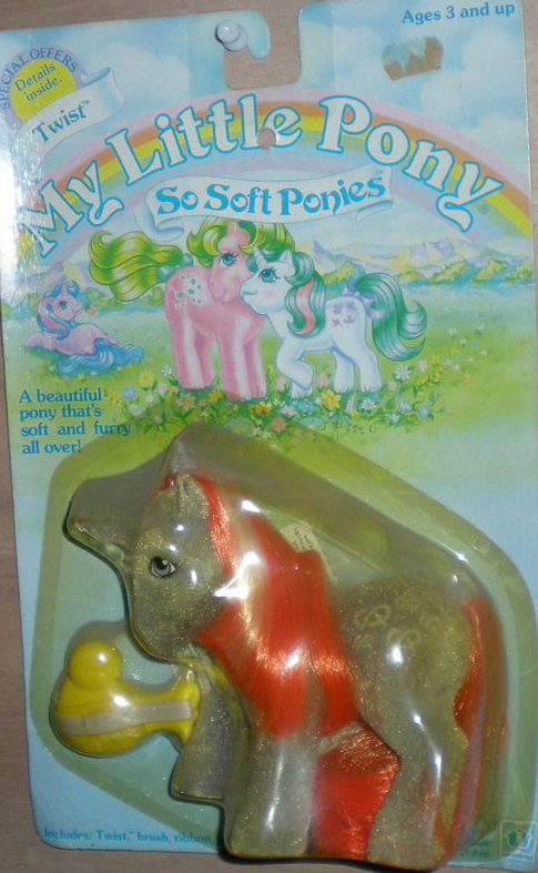 Twist hat ein Horn, ist lila und hat rote Haare mit einer rosa Strähne. Ihr Zeichen sind Brezeln.