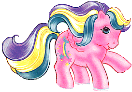 Geschichte:„Eines Nachts beschloss ich, mich auf die Suche nach dem verlorengegangenen Regenbogen zu machen. Ich flog durch das Land der Wolken und Sterne, aber den Regenbogen konnte ich niergends finden. Schließlich war ich so mutlos und müde, dass ich zum Regenbogenberg zurückkehrte und in mein Bettchen kletterte. Und da passierte etwas ganz Unglaubliches: Plötzlich schimmerte die Baby-Stube in leuchtend bunten Farben. "Du hast den Regenbogen gefunden!" riefen die anderen Regenbogen-Babyponys begeistert, die inzwischen wach geworden waren. "Von nun an nennen wir dich Baby Buntlicht!"“