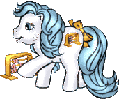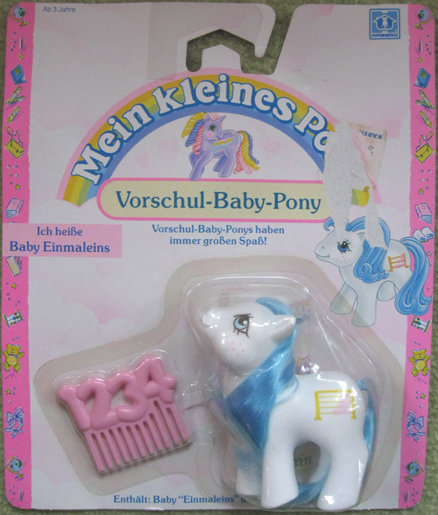 Baby Countalot / Baby Einmaleins ist weiß und hat blaue Haare. Als Zeichen hat sie einen Rechenschieber.