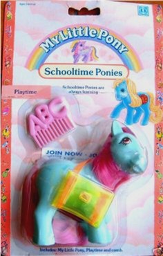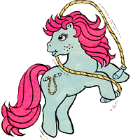 Playtime / Hopserlein ist blau und hat pinke Haare. Sie hat ein Springseil als Zeichen.