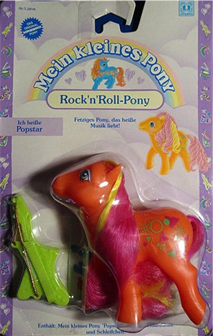 Geschichte:„Ich hatte eine Gitarrenstunde hinter mir und war ziemlich traurig, weil einfach nichts geklappt hatte. Mein Name ist zwar Pop-Star, aber ich vergesse immer die zweite Hälfte eines Liedes. Als ich das meinen Freundinnen erzählte, meinten sie: "Das macht gar nichts! Dann spielst du eben die eine Hälfte des Liedes und wir die andere. Das macht Spaß und unser Publikum wird begeistert sein." Die kleinen Ponys waren tatsächlich begeistert. Sie riefen: "Mehr... mehr... wir wollen mehr!" Seitdem fühle ich mich wie ein richtiger Popstar.“