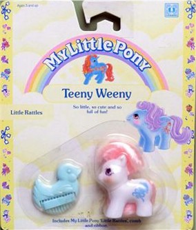 Geschichte:„Mein liebstes Spielzeug ist meine lustigbunte Rassel. Ich spiele fast den ganzen Tag damit. Leider bin ich etwas schüchtern, und wenn ein anderes Pony mich etwas fragt, schüttle ich erst einmal meine Rassel anstatt zu antworten und wackle verlegen mit meinem Köpfchen. Das sieht anscheinend so lieb und lustig zugleich aus, dass meine Ponyfreunde immer anfangen zu lachen. Und plötzlich bin ich gar nicht mehr verschämt und erzähle die tollsten Geschichten!“
