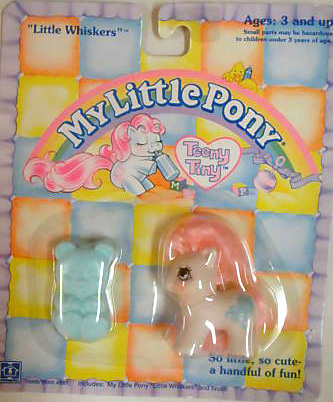 Little Whiskers / Rasselchen ist weiß und hat rosa Haare. Sie hat als Symbol ein Rasselchen.