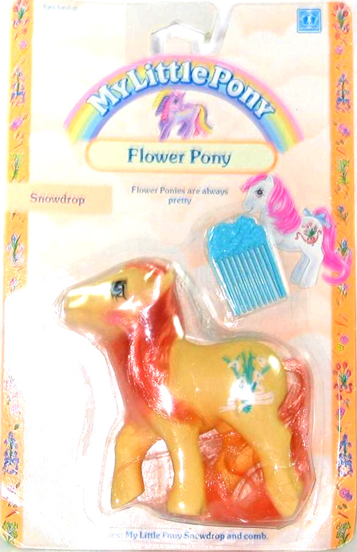 Snowdrop / Schneeglöckchen ist gelb und hat orangene Haare. Sie hat als Symbol einen Strauß Schneeglöckchen.