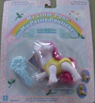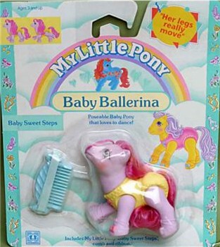 Baby Sweetsteps / Baby Seidentanz ist rosa/lila und hat pinke Haare. Sie trägt einen gelben Balettanzug.
