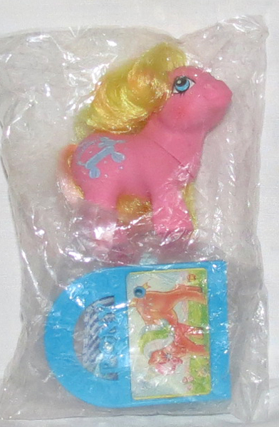 Baby Gametime ist rosa und hat gelb-rosa Haare. Sie bringt das Spiel "Pin-den-Schwanz-des-Ponies-an" mit.