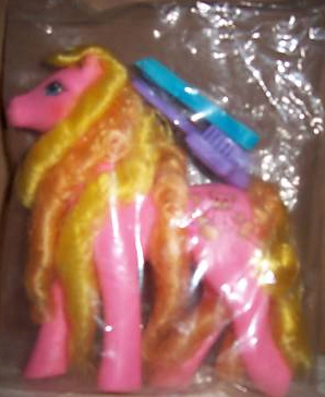 Goldilocks ist rosa und hat vier goldene Locken. Als Symbol hat sie einen Teddy und eine Schüssel mit Brei.