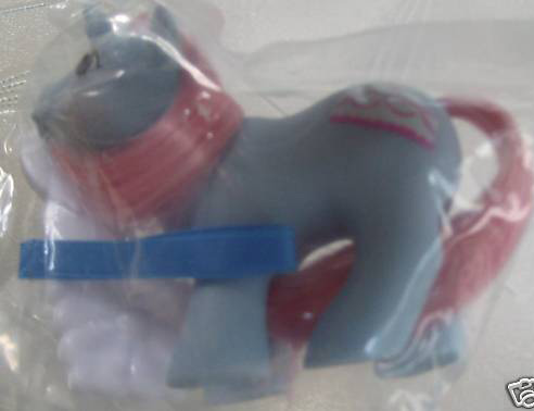 hat ein Horn, ist blau und hat rosa Haare. Als Symbol hat sie einen Kuchen.