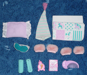 Es ist wahrscheinlich im Jahr 1988 erschienen. In Deutschland ist es auch auf den Markt gekommen. Dazu gehört: ein Kissen, eine Decke, eine Schlafmütze, eine Augenmütze, ein Mond-Kamm, zwei Lockenwickler, vier Hausschuhe, ein Tagebuch und ein Wecker.