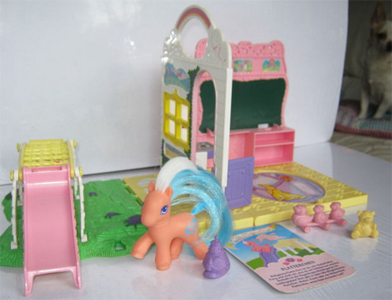 ![]() | Giggle Garden Nursery with Baby Flitter / Kindergarten mit Baby Flatterchen Das Baby ist orange und hat eine weiß-blaue Mähne und einen blauen Schweif. Als Symbol hat sie einen Schmetterling in einem Herzen. |