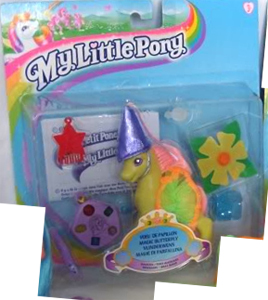 ![]() | Magic Butterfly (Sky Skimmer) ist gelb, hat rosa Haare und einen Schmetterling als Symbol. |
