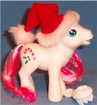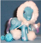 ![]() | Star Swirl / Sternenschauer ist weiß und hat pink-weiß-pink-weiß-pinke Haare mit Lametta. Ihr Zeichen ist ein Sternenwirbel. Das Herz ist pink und das Anhängerpony schaut nach vorne. Im Auge hat sie einen Stern. Weitere Varianten: Pretty Pony Fashions. |
