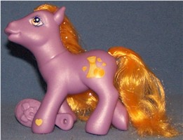 ![]() | Lavender Locket ist lila, hat pink-weiß-türkis-pink-weiß-türkise Haare und ein Amulett als Zeichen. Das Herz an ihrem Huf ist lila und ihr Tütü ist weiß. |