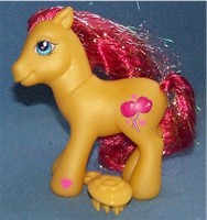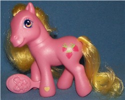 ![]() | Strawberry Sunset ist rosa uns hat gelbe Haare mit Lametta. Ihr Zeichen sind drei Erdbeeren. |