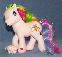 ![]() | Rainbow Swirl (2) ist lila (schimmert) mit pink-orange-gelb-grün-pink-orange-gelb-grüner Mähne. Ihr Zeichen ist ein Eisbecher. Ihre Augen sind lila-gelb-pink-grün mit einem kleinen Punkt. Weitere Varianten: Glitzerspaß Pony (2), Eiswagen. |