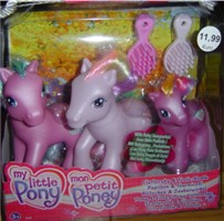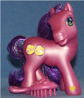 ![]() | Kimono / Kimono (2) ist pink/lila (schimmert) und hat lila Haare mit Glitzerfäden. Als Zeichen hat sie zwei japanische Laternen und ihr Herz ist gelb. Weitere Varianten: Glitzer Ponys, Disney Ponies. |
