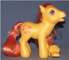 ![]() | Peachie Keen ist gelb und hat dunkelpfirsichfarbene Haare. Ihr Zeichen sind Pfirsiche und Blüten. |