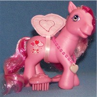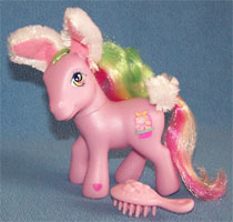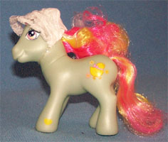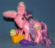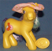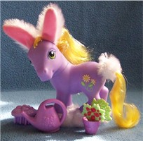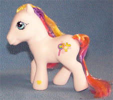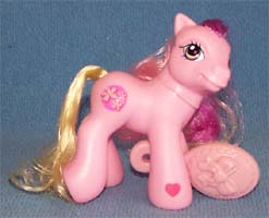 | Hokey Pokey ist rosa (schimmert) und hat eine lila-gelb-rosa Mähne und einen gelben Schweif. Ihr Herz ist pink und ihr Symbol sind Blumen in einem Kreis. |