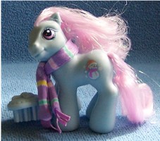 | Winter Ice ist blau (schimmert), hat flieder/rosa Haare mit Lametta. Sie hat einen Schal und als Symbol einen Schneemann. |