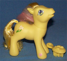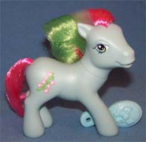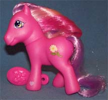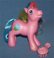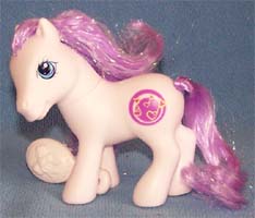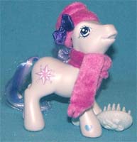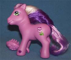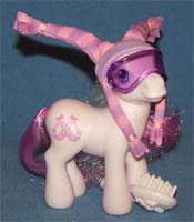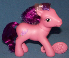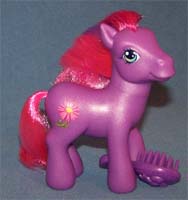 | Abra-Ca-Dabra ist lila (schimmert) und hat gelbe Haare mit Lametta. |
