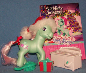 ![]() | Minty / Pfefferminzchen Weitere Varianten: Glitter Celebration Pony, Disney Ponies, Ballet/Ice Skating Ponies with Bonus Pony, Pony mit Wunschflügeln, Winterpony, Anniversary, Winter Pony. |