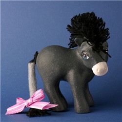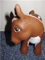 ![]() ![]() | I-Aah I-Aah war ein sehr misshandeltes Parasol. Sie hatte nur noch die Mähnenenden und keinen Schweif mehr. Ihr Körper war ausgeblichen, die Symbole verkratzt und sie hatte Schnitte am Vorderbein. Ich habe sie bekommen (Ebay Lot) und entschieden, dass die Shy Pose sehr gut zu I-Aah passen würde, somit stand Parasols Schicksal fest. Ich habe sie vollkommen mit Strukturpaste (Strukturschnee) aus dem Bastelladen überpinselt, damit man nichts mehr von den Einschnitten sieht und die Acrylfarbe nicht klebrig wird. Die Mähne ist aus Wolle, weil I-Aah eine richtig schöne Stehmähne haben sollte. Der Schweif ist aus Filz, in den ich etwas Wolle genäht habe. Oben ist ein Knopf (befestigt mit Garn an einer Büroklammer, die ich mit Heißkleber innen befestigt habe), der ihn festhält. Der Clou ist nämlich, dass der Schweif auch abfallen kann, wie es bei I-Aah ja oft passiert. Die rosa Schleife vervollständigt I-Aah. Seine Custom Freunde Tigger, Winnie Pooh und Ferkel wohnen auch bei mir. |