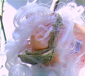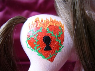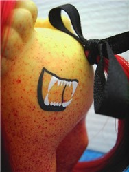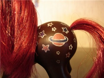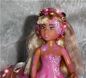![]() ![]() ![]() ![]() | Revenge Revenge war mal eine Dancing Butterflies mit gestutzten Haaren. Irgendjemand hatte ihr mit Rot den Mund angemalt. Das brachte mich auf die Idee ihr ein fieses Aussehen zu geben. Ich habe sie von den restlichen Haaren befreit und dann mit roter Acrylfarbe besprenkelt, damit sie aussieht, als wenn sie in Blut gebadet hat. Ihre Augen und das Zeichen wurden ebenfalls mit Acrylfarbe gemalt. Anschließend habe ich sie mit Dollyhair in der Farbe Cherry Pie rehaired. Zum Schluß wurden die Fangzähne aus Fimo geformt und angeklebt. |