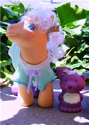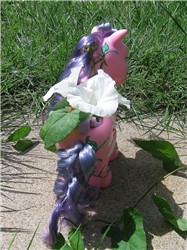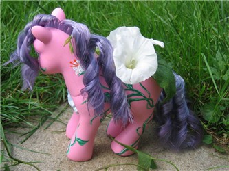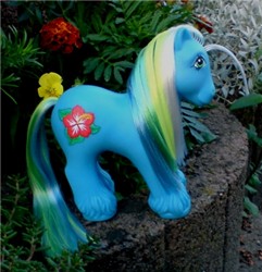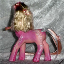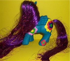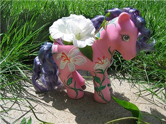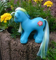 ![]() ![]() ![]() ![]() | Hallo, ich bin Fancy das Blumenpony. Meine Lieblingsjahreszeit ist der Sommer, denn ich liebe alles was blüht und die warmen Strahlen der Sonne. Damit ich immer selbst etwas Sommer dabei habe, kann ich mir immer neue Blumen in mein Rückenversteck pflanzen. Meine Haare sind gefärbt und zu kleinen Löckchen gedreht und meine Blumen- und Rankenverzierungen sind mit Acrylfarbe aufgemalt. |
