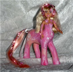 ![]() ![]() ![]() ![]() | Mein Name ist Rosiellys Ich bin die Bewahrerin der Rosenknospen. Ich helfe Mutter Natur dabei, im Frühling die Blumen zum blühen zu bringen. Ganz besondern haben es mir dabei die Rosen angetan, die unter allen Pflanzen im Ponyland die empfindsamsten Knospen haben und deshalb ganz besonders sorgfältig und behutsam gepflegt werden müssen. Wie ihr sehen könnt, bin ich nicht allein Mensch und nicht allein Pony, sondern eine junge Centaurin. In meinen früheren Leben war ich eine völlig verblasste Sunblossom mit filzigem Haar und eine kleine Puppe im Ausverkauf in der Spielwarenabteilung. Als ich in meinem neuen Körper wieder aufgewacht bin, hatte ich einen neuen Schweif aus Catsilk-Haaren, der gut zu meinen Puppenhaaren passte, ein neues Gesicht und eine ganz neue Frisur. Da leider kein Apoxie im Haus war, musste mein neuer Körper mit normaler Modelliermasse zusammengefügt werden, aber es hat trotzdem ganz gut hingehauen. Nach dem Trocknen habe ich einen Bodypaint und hübschen Perlenschmuck bekommen und wurde Mutter Natur als ihre neue rechte Hand vorgestellt. Mutter Natur freute sich darüber, jemanden zu bekommen, der ihr hilft, und schwenkte kurz ihren Zauberstab über meinem Kopf. Mein ganzer Körper prickelte und als ich an mir hinab sah, merkte ich, dass mein Körper überall von feinen weißen Symbolen überzogen wurde. An diesen Zeichen kann nun jeder sehen, dass ich die Bewahrerin der Rosenknospen bin. |