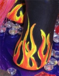 ![]() ![]() ![]() ![]() | Staubfinger & Gwin Vielleicht kennen ja manche von Euch die Bücher "Tintenherz" und "Tintenblut" von Cornelia Funke. Ich habe die Bücher soeben erst verschlungen und kann es kaum abwarten, bis Ende September endlich mit "Tintentod" der Abschluß der Triologie in die Läden kommt! Einer meiner absoluten Lieblingscharaktäre aus diesem Buch ist der Feuertänzer Staubfinger mit seinem zahmen, gehörnten Marder Gwin. Nach längerem Hin und Her entschied ich mich dafür, Staubfinger als Custom zu gestalten - und Gwin durfte dabei natürlich nicht fehlen! Als Grundfarbe habe ich für Staubfinger (oder sollte es jetzt eher Staubhuf heißen? ;) ) Schwarz gewählt, weil man darauf die Flammen natürlich besonders deutlich erkennen können würde. Die Haarfarbe ist auch flammenfarben, und dann konnte es nach dem lästigen Bemähnen endlich an die Feinheiten gehen. Und die hatten es in sich! Die Flammen an allen 4 Hufen laufen ko komplett runderhum; als Grundlage habe ich gelb verwendet, und damit das auf dem Schwarz so richtig deckend wurde, waren alleine dafür 4 Anstriche nötig! Dem folgten dann weitere Anstriche in Orange, Zinnober- und Kirschrot... alles in allem also viel aufwendiger, als ursprünglich gedacht - aber die Wirkung ist enorm! Irgendwie sieht es wirklich so aus, als würde Staubfinger über Flammen laufen... Als Symbol habe ich natürlich auch Flammen gewählt, die (mit ein wenig Fantasie) sogar einen Marder darstellen könnten, der soeben über ein Feuer springt. Und zuletzt mußte natürlich noch Gwin her! Leider bin ich mit Knetmasse nicht sehr begabt, also habe ich bei Schleich und Bully nach einem passenden Tierchen gesucht, habe aber leider nirgends einen Marder entdecken können. Und so habe ich irgendwann verzweifelt ein Eichhörnchen von Schleich erstanden, und das Tierchen "umgebaut", d.h. ich habe den Schanz abgeschnitten und in anderer Position wieder angebracht, und nachdem Gwinn ja ein gehörnter Marder ist, mußten auch noch passende Hörnchen her - diese sind aus den Spitzen von zwei Schaschlik-Spießen entstanden. Zu guter letzt bekam Gwin noch einen neuen Anstrich (dunkler als das ursprüngliche Eichhönrchen, und mit einem hellen schimmernden Bauch und mit leicht schimmernden, kupferfarbenen Akzenten) - und fertig sind damit Staubfinger und Gwin! |