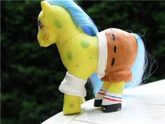 ![]() ![]() ![]() | Spongebob Das ist Spongebob aus Bikin Button. Er hat die Form eines Ponys angenommen um hier ausserhalb des Wassers nach dem Eichhörnchen aus Texas (Lucy, oder) zu suchen. Ich hab ihn mit Lufttrocknende Knete gemacht und mit Revell Farben bemalt. Das trocknen der Farbe hat sehr lang gedauert und die Knete ist sehr brüchig geworden, aber mit ein wenig Kleber hält das ganze sehr gut. Am süßesten sind die Zähne vorne XD. Alles in allem mit trocknender Knete und dem bemalen hat es ne Woche gedauert bis er fetig war. |