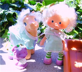 ![]() ![]() ![]() ![]() | Mein kleines Pony -Angel Cake- Da ich schon lange ein Emily Erdbeer Fan bin, hatte ich vor nicht all zu langer Zeit die Idee ein Pony in eine Emily Erdbeer Figur zu verwandeln. Da ich super schlecht nähen kann, und auch kein Kleidchen einer meiner Puppen umarbeiten wollte mußte also etwas anderes her. Inspiriert von Jack Sparrow bin ich dann also mit Modelliermasse ans Werk gegangen. Sie bekam den passenden Kopfschmuck, das schicke Kleidchen mit der Schleife, die Schuhe (mit Absatz, jaaa *g*) und sogar eine kleine Falte in der Strumpfhose aufgearbeitet. Gleichzeitig habe ich sehr auf Detaills geachtet. Überall dort wo am original Nähte sind, habe ich diese auch am Ponykleidchen angebracht. Auch an Falten und dem "Verschluß" des Kleidchens, hinten am Rücken habe ich nicht gespart. Danach wurde die Kleine bemalt und hat die passende Körperfarbe bekommen. Auch die Augen sind nach Emily Art gestaltet (die Puppen haben nur oben Wimpern). Einzig den Lichtpunkt habe ich erhalten. Es sollte ja immernoch ein MkP sein ;). Nachdem dann die so typischen roten Wangen und Sommersprossen aufgemalt waren ging es an die Haare. Diese habe ich relativ kurz gehalten und sehr stark gelockt... und fertig war Angel Cake als Pony. Für alle, die die Figuren nicht kennen habe ich das original im ersten Bild neben das Pony gestellt. |